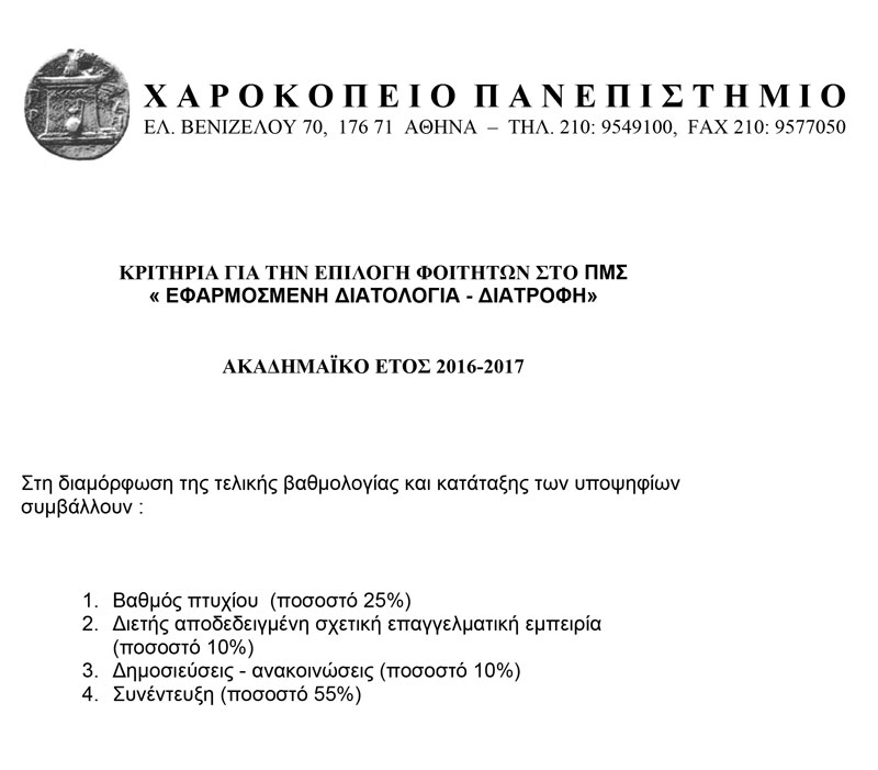 Παρακάτω θα βρείτε την προκήρυξη του Πανεπιστημίου, τα κριτήρια αξιολόγησης των ενδιαφερόμενων με την ποσοστιαία συμμετοχή τους στο τελικό αποτέλεσμα και την αίτηση που πρέπει να καταθέσετε στη Γραμματεία.