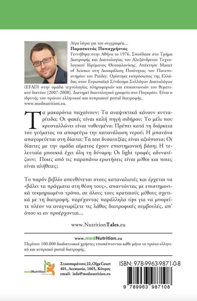 Το e-book αυτό έρχεται να απαντήσει μέσα από έρευνες και επιστημονικά δεδομένα, σε όλους τους κραταιούς μύθους σχετικά με τη διατροφή. Είναι εντυπωσιακό, όμως παρά τον τεράστιο όγκο διατοφικής ενημέρωσης που είναι πλέον διαθέσιμος, τέτοιοι μύθοι εξακολουθούν να επιβιώνουν...