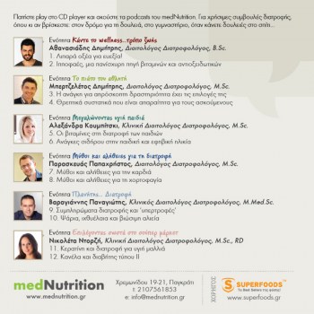 Το CD βασίστηκε στην πρωτοποριακή ενότητα των podcasts, που πρώτο λάνσαρε στον τομέα της διατροφής το medNutrition.
