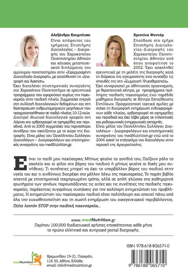 Μην ξεχνάς ότι η παιδική παχυσαρκία αποτελεί ένα σοβαρό νόσημα, μια ασθένεια του 20ου και 21ου αιώνα, που χρήζει άμεσης αντιμετώπισης. Διάβασε λοιπόν το βιβλίο και πες και εσύ STOP στην παιδική παχυσαρκία...