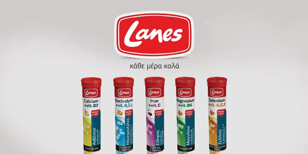 Παράλληλα, τα συμπληρώματα διατροφής Lanes, με στόχο να αναπληρώσουν, αλλά και να προλάβουν, τις καθημερινές ελλείψεις του οργανισμού μας δραστικά, αποτελεσματικά και κυρίως οικονομικά, συνδυάζουν στοιχεία απαραίτητα για την υγιή λειτουργία του σώματος όπως το Ασβέστιο, το Μαγνήσιο, ο Σίδηρος και το Σελήνιο, μαζί με τους ιδανικότερους συνδυασμούς βιταμινών, και παρουσιάζουν τη νέα, ολοκληρωμένη σειρά Μετάλλων τους. Διατίθενται σε αναβράζουσα μορφή, έχουν υπέροχη γεύση και κοστίζουν μόνο 4,90€, αποτελώντας την πιο προσιτή πρόταση και αποδεικνύοντας ότι... «για κάθε ανάγκη, πρώτα Lanes!»