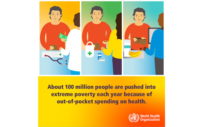 - Περίπου 100 εκ. άνθρωποι οδηγούνται στην ακραία φτώχεια (ζουν το πολύ με $1,90 την ημέρα) επειδή χρειάζεται να πληρώνουν για τις υπηρεσίες υγείας που απολαμβάνουν.