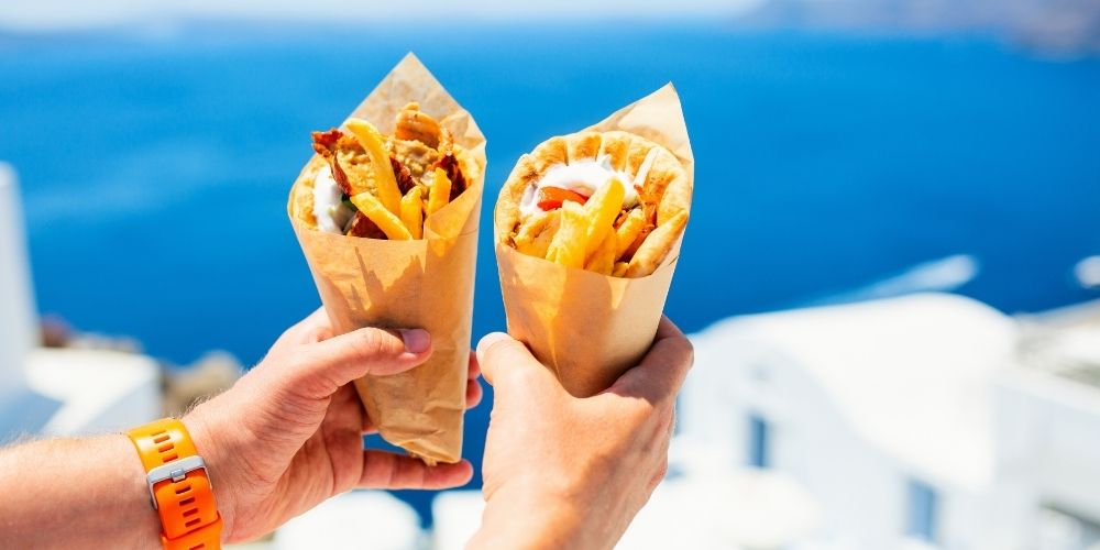 Ο χοιρινός γύρος και το χοιρινό σουβλάκι, ειδικά αν αποτελούνται από λιπαρά κομμάτια κρέατος, είναι πλούσια σε κορεσμένα λιπαρά. Ακόμη, οι τηγανιτές πατάτες είναι πλούσιες σε trans λιπαρά εξαιτίας του τηγανίσματός τους σε πολυχρησιμοποιημένα σπορέλαια χαμηλής ποιότητας. Τόσο τα κορεσμένα όσο και τα trans λιπαρά έχουν συσχετιστεί με διάφορες επιπτώσεις στην υγεία, όπως είναι η αύξηση του κινδύνου εμφάνισης καρδιαγγειακών προβλημάτων.